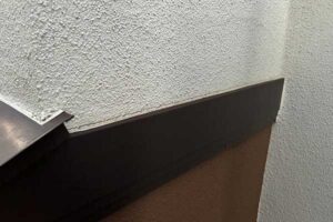 壁との取り合い部分には雨押え板金を施工し、壁からの伝い水の侵入を防ぎます。